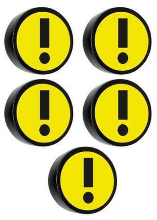 Kerek mágnes felkiáltójellel a fontos dokumentumok és információk mágnestáblán való megjelölésére. A merész színek jó láthatóságot biztosítanak.