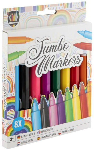 8 db-os Jumbo filctoll Az 8 db-os Jumbo filctoll készlet ideális választás gyerekek számára, akik szeretnek rajzolni, színezni vagy írni. A filctollak vastag hegyűek, így könnyedén kezelhetőek és szélesebb vonalakat húzhatunk velük, ami ideális a gyerekek számára. A készletben található színek élénkek és intenzívek, így a gyerekek könnyedén kiemelhetik a rajzok rész