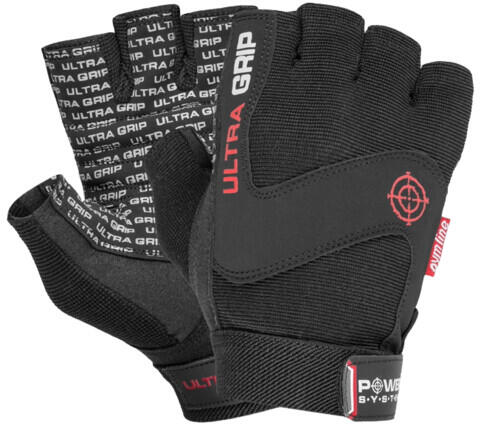 A Power System Ultra Grip kiváló minőségű fitneszkesztyű, elegáns fekete kivitelben, csúszásgátló bevonattal.