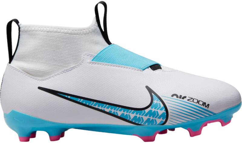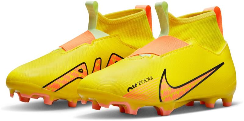 Nike JR MERCURIAL SUPERFLY 9 ACADEMY FG/MG futballcipő fűző nélküli felsőrésszel. ZOOM AIR csillapító egységgel vannak felszerelve, amely a meccs alatt gondoskodik a lengéscsillapításról. A szintetikus talpban lévő tüskék megbízható tapadást biztosítanak. Az MG típusú futballcipők természetes és mesterséges felületeken való használatra készültek. ELŐNYÖK: csipke