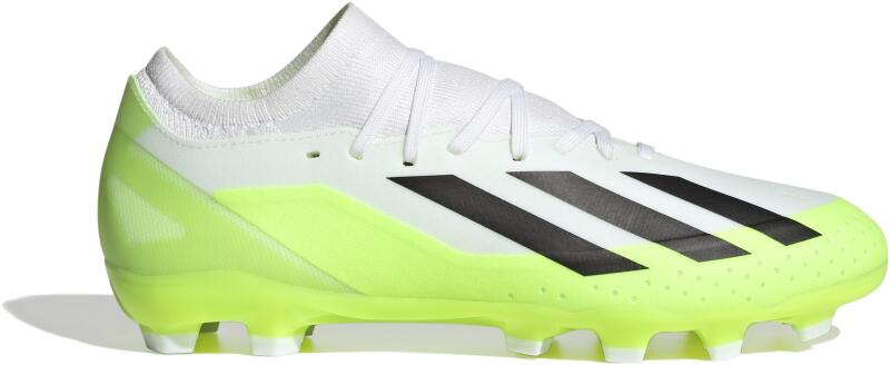 Az adidas X CRAZYFAST. 3 MG futballcipő a gyorsaságra és stabilitásra összpontosító futballcipők sorozata. Az univerzális talp különböző felületekhez igazodik, és támogatja a stabilitást a gyors irányváltások során. A könnyű textil felsőrész felületkezelése stratégiailag elhelyezett megerősítő rétegekkel. A kötött gallér és a fűzők fűzése tökéletesen erős