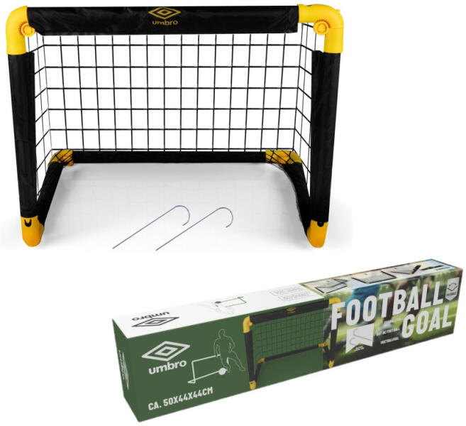 - Összecsukható focikapu - 1 db / csomag - Műanyag keret, PE hálóval - 50 x 44 x 44 cm, gyermek méret - Fekete-sárga szín - Percek alatt felállítható és összecsukva könnyen szállítható Garancia (fogyasztóknak): 6 hónap Az összehajtható Umbro futballkapu tökéletes azoknak a gyerekeknek, akik most kezdik futball-pályafutásukat. A kapu néhány egyszerű lépésben összeáll