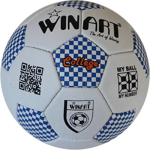 Focilabda, futball labda Műbőr 5-s méret WINART COLLEGE kék-fehér Anyag alábélés: szoft tapintású, matt felületű, hasított polyuretán és PVC keverék anyag. 4 rétegű, a forma és körméret tartást biztosító, keresztbe ragasztott textil, alábéleléssel. Háromféle színben. Körméret: No. 5: 68,00 – 70,00 cm, No. 4: 63,50 – 66,00 cm Súly: No. 5: 420 – 445 gramm, No.