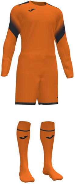 A Joma ZAMORA V GOALKEEPER SET ORANGE L/S narancssárga kapuskészlet mezet, rövidnadrágot és zoknit tartalmaz