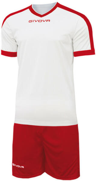 Modern GIVOVA KIT REVOLUTION labdarúgó-készlet fehér-piros futball mez és rövidnadrágot tartalmaz.