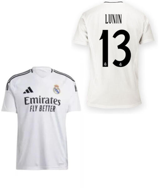 A Real Madrid legújabb, 2024-25-ös gyerek futballmeze tökéletes választás minden kis rajongónak, aki a világhírű klubot támogatja, és LUNIN nevét szeretné viselni. A mez újrahasznosított poliészterből készült, az AEROREADY technológia felhasználásával, amely segíti az optimális nedvességelvezetést. A fehér mez fekete Adidas hímzéssel, fekete részletekkel, valamint a