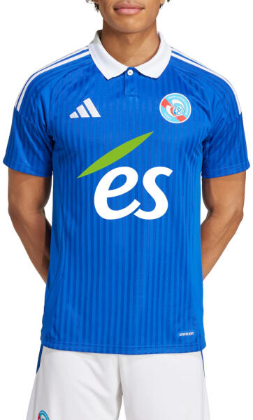 Függőleges csíkokkal tervezett V-nyakú póló. A bordás gallér és az ujjak kéttónusúak. Hímzett logó. 100% POLIÉSZTER.