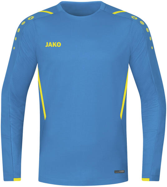 Hosszú ujjú játékpóló kerek nyakkivágással. Az eleje és a hátlap alsó része festett cérnából készült, míg a felső részhez szitanyomáshoz festett szövetet adtunk. Hímzett logó az elején.
