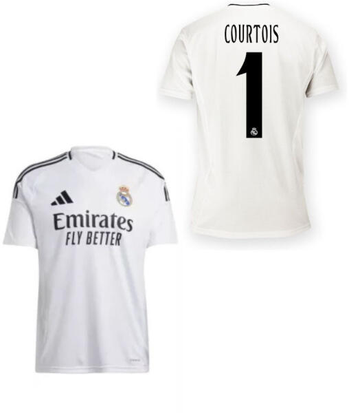 A Real Madrid legújabb, 2024-25-ös gyerek futballmeze tökéletes választás minden kis rajongónak, aki a világhírű klubot támogatja, és COURTOIS nevét szeretné viselni. A mez újrahasznosított poliészterből készült, az AEROREADY technológia felhasználásával, amely segíti az optimális nedvességelvezetést. A fehér mez fekete Adidas hímzéssel, fekete részletekkel, valamin