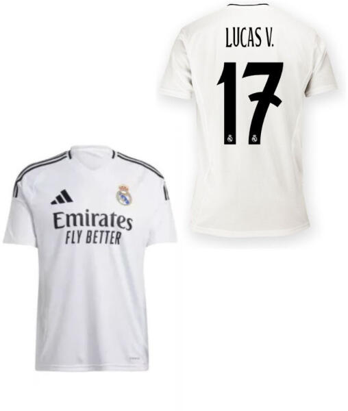 A Real Madrid legújabb, 2024-25-ös gyerek futballmeze tökéletes választás minden kis rajongónak, aki a világhírű klubot támogatja, és LUCAS V. nevét szeretné viselni. A mez újrahasznosított poliészterből készült, az AEROREADY technológia felhasználásával, amely segíti az optimális nedvességelvezetést. A fehér mez fekete Adidas hímzéssel, fekete részletekkel, valamin