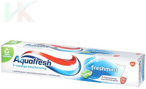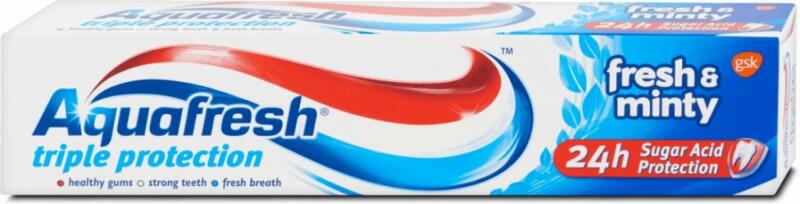 Aquafresh Fresh & Minty fogkrém 125 ml – ez valójában három fogkrém egyben. Moss fogat naponta kétszer Aquafresh pasztával. Háromszoros védelem a friss leheletért, az egészséges fogínyért és az erős fogakért. Az aktív ásványi anyagok erősítik a fogzománcot, hogy megerősítsék és védjék a fogszuvasodást. Harcol a foglepedékkel, hogy segítsen megvédeni a fogíny