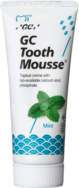 GC Tooth Mousse fogkrém RECALDENT formulával, amely CPP-ACP-t (kazein-foszfopeptid - amorf kalcium-foszfát) tartalmaz. A szájban alkalmazva a CPP-ACP a fogkőhöz kötődik, és a helyileg szükséges kalciumot és foszfátot juttatja a szervezetbe. GC Tooth Mousse fogkrém BIOAKTÍV fogkrém LÁMPÁVAL ÉS FOSZFÁTOKKAL A GC Tooth Mousse egy olyan remineralizáló fogkrém, amely a RECALDENT