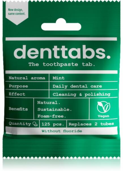 Denttabs Natural Toothpaste Tablets without Fluoride, 125 db, Komplett védelemért nőknek, A fogkrém nem tartalmaz fluoridokat és természetes módon erősíti a fogakat. Érzékeny fogak és fogíny ápolására különösen alkalmas. Tulajdonságok: foglepedék, fogkő és fogszuvasodás elleni megelőző védelmet biztosít garantáltan kíméli a fogakat és a fogínyt ápolja a fogínyt m