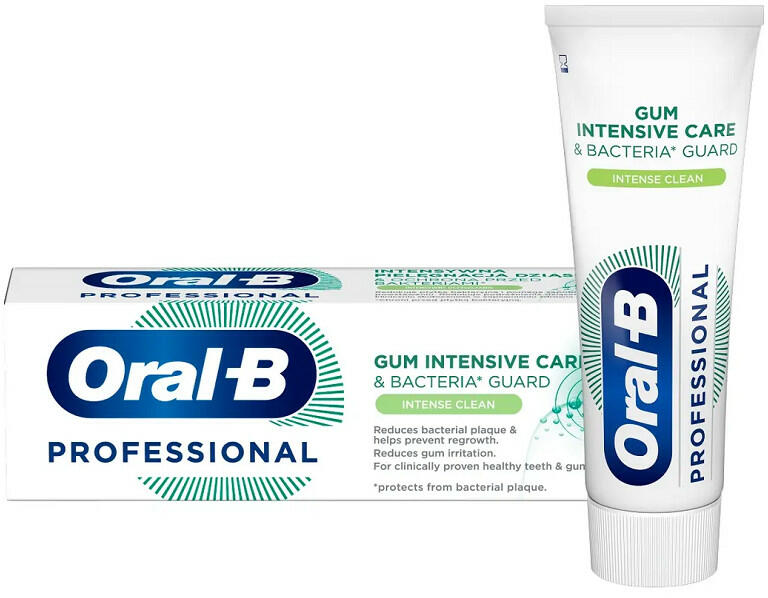 Az Oral-B Gum Intensive Care & Bacteria Guard Intensive Clean fogkrém csökkenti a bakteriális eredetű lepedéket és segít megelőzni az újraképződését. Klinikailag igazoltan védi a fogakat és segít egészségesebbé tenni a fogínyt. Különleges ActivGuard+ formulája 2X nagyobb mértékben csökkenti a bakteriális eredetű lepedéket, mint az általános Oral-B fluoridos fogkr