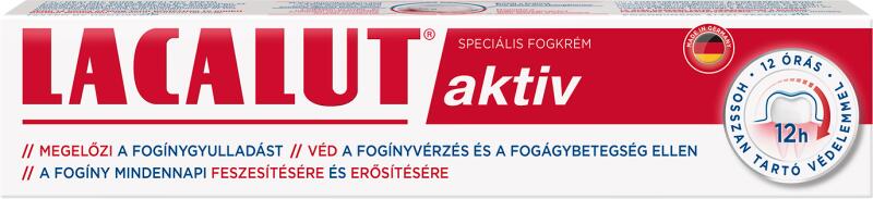 LACALUT aktív fogkrém a fogínyvérzés és a fogágybetegség megelőzésére. A speciális LACALUT hatóanyag formula azonnal, érezhetően feszesíti és erősíti a fogínyt. Megelőzi a fogínygyulladást. 12 órás hosszan tartó védelemmel a biofilmképződés megakadályozására. Titán-dioxid mentes. FOGORVOSOK ÁLTAL TESZTELT. Magas fluoridtartalma véd a fogszuvasodás ellen. Csökk