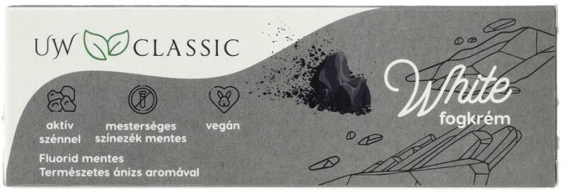 Mosolyogj szén-tisztán a Krém Mester UW Classic White fogkrémmel! Aktív szénnel eltávolítja a szennyeződéseket, védi fogaid fehérségét. Fluorid és mesterséges színezékek nélkül.