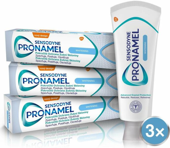 A 3x Sensodyne Pronamel Whitening egy fogkrém, amely megvédi a zománcot a savak napi hatásaitól. Kifejezetten érzékeny fogakra kifejlesztett fogkrém - segít megvédeni a fogszuvasodást* - friss érzés - segít megerősíteni a legyengült zománcot - segít megvédeni a fogak károsodását savak - 1450 ppm F nátrium-fluoridot tartalmaz *napi kétszeri fogmosáskor ÖSSZETEVŐK: Aqua,
