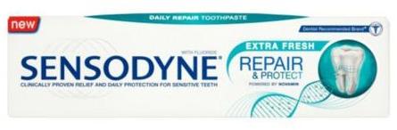 Képes helyreállítani fogai érzékeny területeit. Egyedi Novamin formulája védőréteget képez a sérülékeny területek felett és segít védekezni a fogérzékenység okozta fájdalommal szemben. Napi kétszeri használat mellett fogmosással a Sensodyne Repair & Protect fogkrém hatékony és tartós védelmet biztosít a fogérzékenység ellen és mindennapos védelmet nyújt a f
