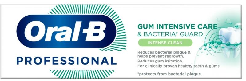 Gyártó: Oral-B Modell: Professional Gum Intensive Care & Bacteria Guard Intense Clean 75 ml Leírás: A kiváló minőségű Oral B Professional Gum Intensive Care & Bacteria Guard fogkrém gondoskodik a fogai és a fogínye teljes körű ápolásáról. Megtisztítja a fogait a foglepedéktől és az ételmaradékoktól, közben ápolja fogínyt és a szájüreg nyálkahártyáját. Tul