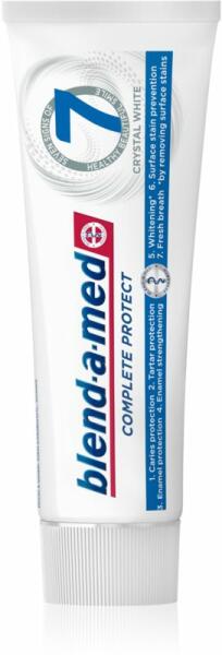 Gyártó: Blend-a-med Modell: Complete Protect 7 Crystal White 75 ml Leírás: A Blend-a-med Complete Protect 7 fogkrém a felületi elszíneződések eltávolításával fehéríti a fogakat, valamint teljes körű védelmet kínál, hogy az egészséges és gyönyörű mosoly 7 jelét biztosítsa. Tulajdonságok: A felületi elszíneződések eltávolításával fehérít Teljes körű védelmet