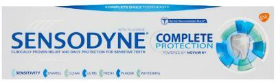 A Sensodyne complete protection + mindennapi használatra szánt fogkrém számos szájápolási előnyt biztosít a klinikailag bizonyított fogérzékenység elleni védelemmel együtt. Hűsítő menta az élénkítő, tartós hűsítő érzésért. Frissítő menta aromás gyógynövényekkel. Egyedülálló formula fejlett tisztítórendszerrel a kiemelkedő tisztító hatásért* fogérzéken