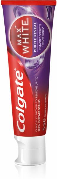 Colgate Max White Purple Reveal, 75 ml, A friss leheletért unisex, A kiváló minőségű Colgate Max White Purple Reveal fogkrém teljes mértékben gondoskodik a fogak és a fogíny ápolásáról és kellemesen üde leheletet biztosít. Tulajdonságok: fehéríti a fogakat frissíti a leheletet ápolja a fogínyt tisztítja a fogakat fogszuvasodás elleni védelmet nyújt Használata: Célszer