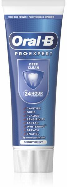 Az Oral-B Pro Expert Deep Clean klinikailag igazolt, fogorvosok közreműködésével kifejlesztett professzionális fogkrém alaposan tisztít, és napi két fogmosással 24 órán át védelmet nyújt a lepedékkel szemben. Tulajdonságok: A különleges, oldódó kristályoknak köszönhetően hatékony mélytisztítást végez Napi két fogmosással 24 órán át véd a lepedékkel szemben Akt
