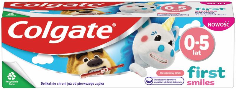 Őrizd meg gyermeked mosolyának egészségét a Colgate Kids First Smiles fogkrémmel, melyet 0-5 éveseknek fejlesztettek ki. A fogkrém speciálisan a vékonyabb, lágyabb fogzománcú kisgyerekek fogait védi, és finom eper íze miatt élvezetes lesz a fogmosás. Fluoridtartalma fogorvosok által ajánlott, mesterséges színezék és édesítőszer nélkül. Tulajdonságai: eltávolítja a l