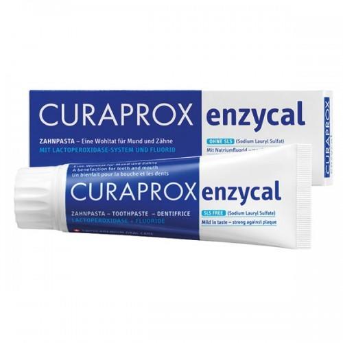 A Curaprox Enzycal fogkrém nem tartalmaz semmilyen károsító anyagot, így nincsen benne agresszív habképző anyag (nátrium-lauril-szulfát, SLS) és az erős illóolajokat (pl. mentolt) is mellőzték az összeállításánál. Nátrium fluoridot tartalmaz (950 ppm ), visszaépíti a sérült fogzománcot és akadályozza a káros bakteriális lepedék növekedését. Fluoridtartalma erős