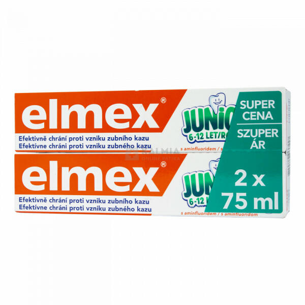 Hatékony fogszuvasodás elleni védelem a fogváltás időszakában. Elmex Junior fogkrém DUOPACK Hatékony fogszuvasodás elleni védelem a fogváltás időszakában. Az elmex® kimagaslóan hatékony aminfluorid formulája azonnal védőréteget képez a fogak felületén. Az életkornak megfelelő (1400 ppm) fluoridtartalomnak köszönhetően a maradó fogak erősek és védettek lesznek a fo