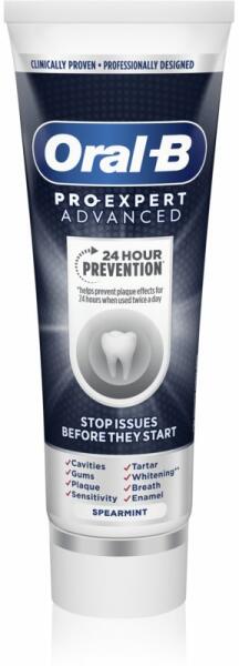 Oral B Pro Expert Advanced, 75 ml, A fogzománc megerősítésére unisex, A kiváló minőségű Oral B Pro Expert Advanced fogkrém gondoskodik a fogai és a fogínye teljes körű ápolásáról. Megtisztítja a fogait a foglepedéktől és az ételmaradékoktól, közben ápolja fogínyt és a szájüreg nyálkahártyáját. Tulajdonságok: meggátolja a fogkő lerakódást fogszuvasodás elle