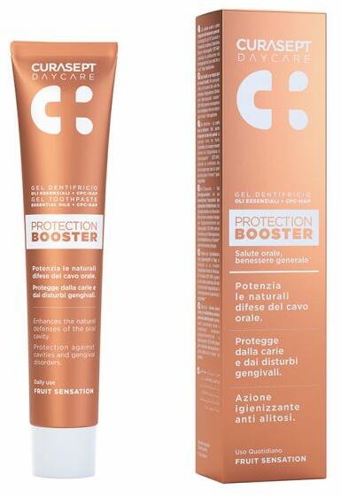 Curasept Daycare Protection Booster fogkrém erősíti a szájüreg természetes védelmét CPC-HAP komplex és illóolajok kombinációjával. Curasept Daycare Protection Booster fogkrém – fruit sensation (75ml) Mindennapra javasolt fogkrém hosszan ható formulával. Erősíti a szájüreg természetes védelmét CPC-HAP komplex és illóolajok kombinációjával az íny egészségéért és