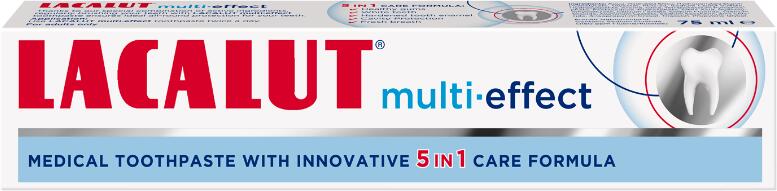 5 in 1 ápoló formula: egészséges fogíny, fehér fogak, erősebb fogzománc, fogszuvasodás elleni védelem, friss lehelet. A Lacalut multi-effect fogkrém rendszeres alkalmazása speciális hatóanyag-kombinációjának köszönhetően biztosítja a fogak megfelelő, teljes körű védelmét. Használata: Naponta kétszer mosson fogat a Lacalut multi-effect fogkrémmel. Csak felnőttek szám