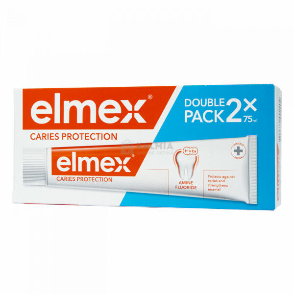 Az Elmex Caries Protection fogkrém remineralizálja a fogzománcot, és hatékonyan véd a fogszuvasodás ellen. Elmex Caries Protection fogkrém DUOPACK (2x75ml) Remineralizálja a fogzománcot, és hatékonyan véd a fogszuvasodás ellen. Az elmex kimagaslóan hatékony aminfluorid formulája kettős hatású kalcium-fluorid védőréteget képez a fogak felszínén, amely remineralizálja a fo