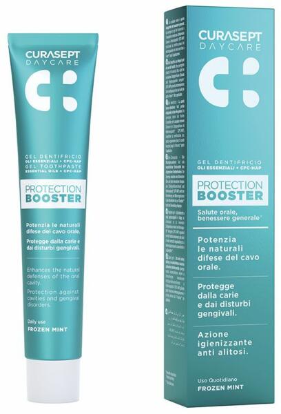 A Curasept Daycare Protection Booster fogkrém hosszabb, akár 4 órás védelmet nyújt a szájüregben a lepedékképződésért felelős baktériumokkal szemben. Szabadalmaztatott CPC-HAP komplexet (cetilpiridinium-klorid és hidroxiapatit) és illóolajokat tartalmaz. Használatának előnyei közé tartozik mindenekelőtt a fogszuvasodás és az ínybetegségek elleni hatékony védelem, vala