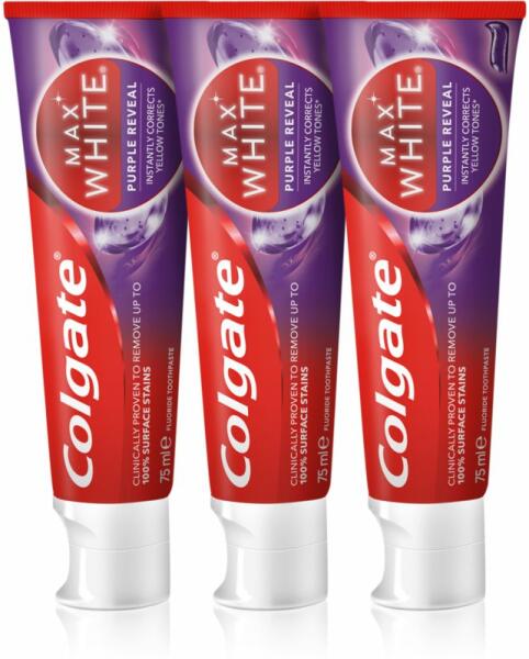 Colgate Max White Purple Reveal, 3x75 ml, A friss leheletért unisex, A kiváló minőségű Colgate Max White Purple Reveal fogkrém teljes mértékben gondoskodik a fogak és a fogíny ápolásáról és kellemesen üde leheletet biztosít. Tulajdonságok: fehéríti a fogakat frissíti a leheletet ápolja a fogínyt tisztítja a fogakat fogszuvasodás elleni védelmet nyújt Használata: Célsz