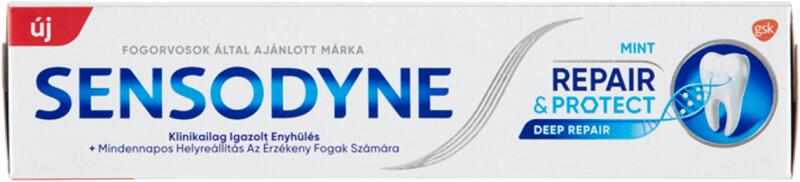 Sensodyne Repair & Protect fogkrém - Klinikailag igazolt enyhülés az érzékeny fogak számára Termékleírás: A Sensodyne Repair & Protect fogkrém klinikailag igazolt enyhülést nyújt az érzékeny fogak számára. Ez a fluoridos fogkrém mindennapos védelmet biztosít az érzékeny fogak számára, segítve a fájdalomérzet csökkentését. Főbb jellemzők: Klinikailag igazolt
