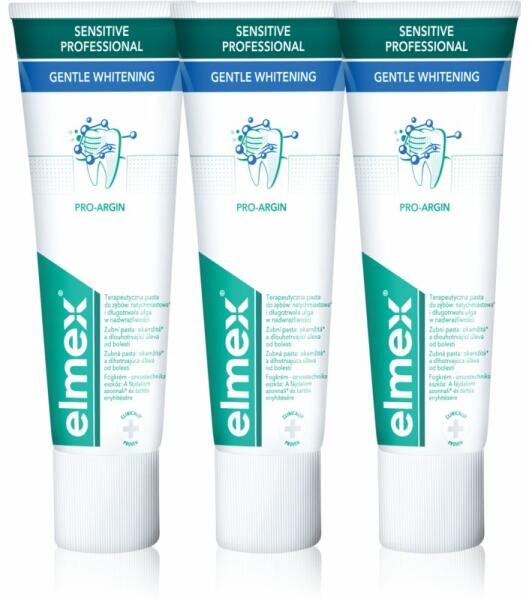 Elmex Sensitive Professional Gentle Whitening, 3x75 ml, Fogkrémek férfiaknak, Az érzékeny fogak ápolására szolgáló Elmex Sensitive Professional Gentle Whitening fogkrém garantálja, hogy használatával a hideg és forró italokat is kellemetlen érzékes nélkül fogja tudni élvezni. Intsen búcsút a fokozottan érzékeny fogaknak. Tulajdonságok: ápolja a szabadon álló fognyakat f