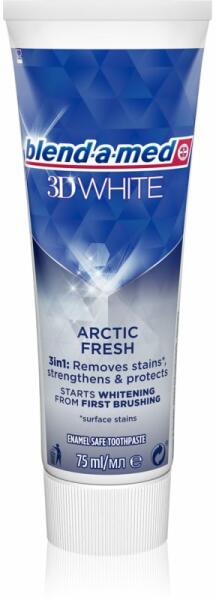 Blend-A-Med 3D White Artic Fresh fogkrém 75ml Hivatalos magyarországi forgalmazótól. Leírás: A Blend-a-med 3D White Classic Fresh fogkrém frissítő hatóanyagainak köszönhetően hosszan tartó frissességet biztosít a nyelv, a fogíny és a fogak számára, valamint a felületi elszíneződések eltávolításával fehéríti a fogakat. Tulajdonságok: Fogkrém fehérítő hatással Hos