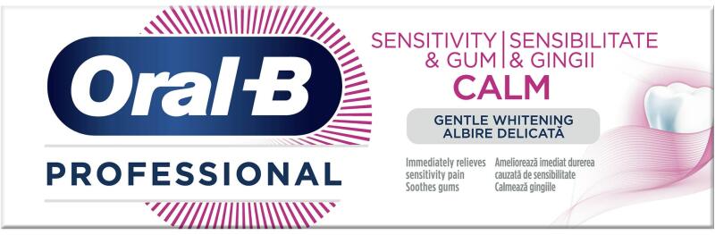 Gyártó: Oral-B Modell: Professional Sensitivity & Gum Calm Gentle Whitening 75 ml Leírás: Az Oral-B Professional Sensitivity & Gum Calm fogkrém klinikailag igazoltan azonnali enyhülést biztosít az érzékeny fogaknak, és megnyugtatja a fogínyt. Egyedülálló ActivCalm technológiája speciális védőréteget képezve azonnal enyhíti az érzékenység okozta fájdalmat, és hű