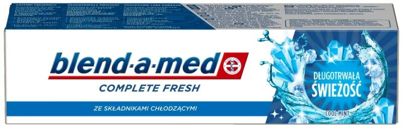Blend-a-med Complete Fresh Lasting Freshness Fogkrém, 75 mlHűsítő összetevőinek köszönhetően hűs, frissítő fogmosási élményt és hosszan tartó frissességet biztosítVédelmet nyújt a fogszuvasodás ellenTisztít és fehérít a felületi elszíneződések eltávolításávalHűsítő mentolos íz A Blend-a-med Complete Fresh Lasting Freshness fogkrém Dual-Silica technológiája
