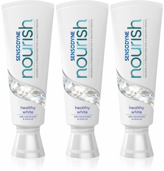 Sensodyne Nourish Healthy White, 3x75 ml, Természetes kivonatokkal unisex, A kiváló minőségű Sensodyne Nourish Healthy White fogkrém gondoskodik a fogai és a fogínye teljes körű ápolásáról. Megtisztítja a fogait a foglepedéktől és az ételmaradékoktól, közben ápolja fogínyt és a szájüreg nyálkahártyáját. Tulajdonságok: megbízhatóan tisztítja a fogakat meggátolja