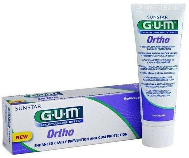 A GUM Ortho fogrém a rögzített fogszabályzót viselők számára nyújt megfelelő szájápolási megoldást. Hatékony, fluoridot (1490 ppm) és izomaltot tartalmazó formulája segít megelőzni a fehér foltok (szuvas léziók) kialakulását és a fogszuvasodást a fogszabályozó környékén. A CPC (cetilpiridinium-klorid, 0.05%) antibakteriális hatása csökkenti a bakteriális filmré