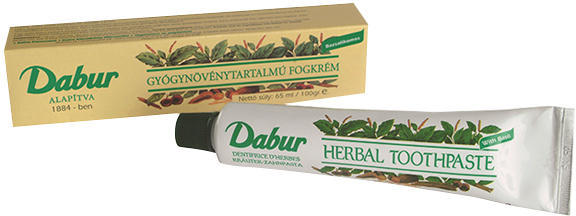 Dabur herbal fogkrém 65 ml Gyógynövényekből készült, fluormentes fogkrém indiai ősi gyógyászata, az Ayurveda receptúrája alapján. OÉTI Notifikációs szám: 1090/2009. A Dabur India Ltd. által gyártott fogkrém különösen alkalmas a teljes körű szájhigiénia biztosítására. A termék fluort nem tartalmaz, de a benne található 19 indiai és nepáli gyógynövény biztosít