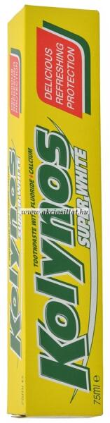 Kolynos Super White Fogkrém 75ml Tündöklő mosoly, retro érzés! A Kolynos Super White fogkrém visszahozza a nosztalgikus idők kedvenc fogkrémjének erejét, modern ápoló hatóanyagokkal kiegészítve. Mindennapos használata segít megóvni fogaid egészségét és fehérségét, miközben friss mentolos ízével üde leheletet biztosít. Ez a fogkrém hatékonyan eltávolítja az elszí