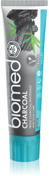 Biomed Charcoal, 100 g, Fluor nélkül unisex, A kiváló minőségű Biomed Charcoal fogrém a fogak kíméletes fehérítésére szolgál. Hatékonyan távolítja el a fogak kellemetlen elszíneződését és rendszeres használatát ragyogó mosollyal köszöni meg önnek. Tulajdonságok: fehéríti a fogakat segít leküzdeni a fogszuvasodást és a foglepedéket frissíti a leheletet garantá