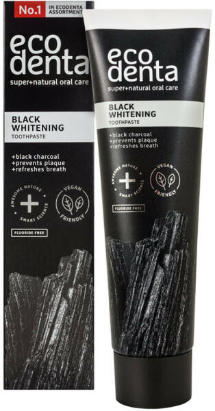 Vegán, fekete fogkrém tele természetes összetevőkkel, fekete szénnel, Teavigo-val és szuperképességekkel. Hatékonyan fehéríti a fogakat, sikeresen eltávolítja a lepedéket és hosszan tartó frissítő hatással rendelkezik. Fluoridmentes. Dörzshatású összetevőket, peroxidot, SLS-t vagy parabéneket nem tartalmaz. Fekete színű, fehérítő fogkrém. Hatékonyan fehéríti a fo