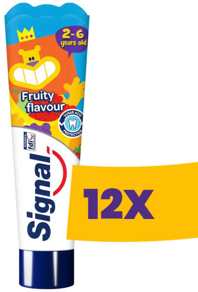 A Signal Fruity flavour fogkrémet 2-6 éves gyerekeknek ajánljuk. Formulája gyengéd az ínyhez és védi a fogzománcot. 97%-ban természetes eredetű összetevők felhasználásával készül. A gyermekek számára megfelelő mennyiségű fluoridot tartalmaz, ami segít megerősíteni a fogakat és megelőzni a fogszuvasodást. Nézze meg a csomagoláson a legfrissebb információkat, összet