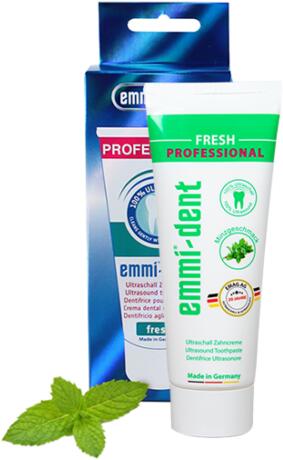 Emmi-dent ultrahangos fogkrém Fresh (75 ml) F riss, erőteljes borsmenta ízesítéssel. Speciális mikrobuborékos fogkrémünk támogatja - a 100%-os eredeti ultrahangos Emmi-dent mikro-fogtisztítás részeként - az ultrahangos tisztítás hatékonyságát. Az eredeti ultrahang és az Emmi-dent fogkrém minden másodperc törtrészében milliónyi mikrobuborékot képeznek a szájban. Az ultr