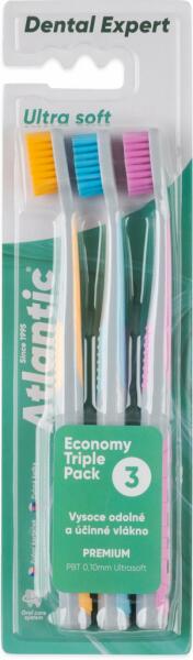 Atlantic Dental Expert Ultra Soft ultrapuha fogkefe 3 db Az Atlantic fogkefe a nemzetközi szabványnak megfelelően, a legújabb orvosi és tudományos ismeretek szerint készül. Nagy hatékonyság a fej speciális formájának köszönhetően, amely lehetővé teszi a tökéletes és könnyű tisztítást még a nehezen elérhető helyeken is. A PBT szálakra jellemző, hogy a nejlonnal ellent